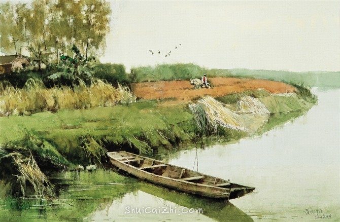 黄向阳乡村风景水彩画作品欣赏-5