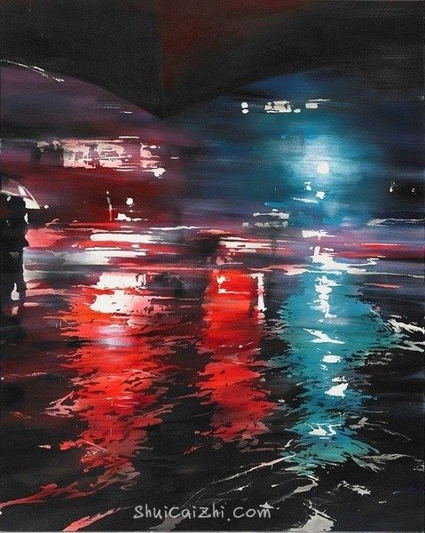 首页 台湾画家林经哲雨夜光影水彩画作品-17