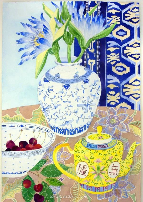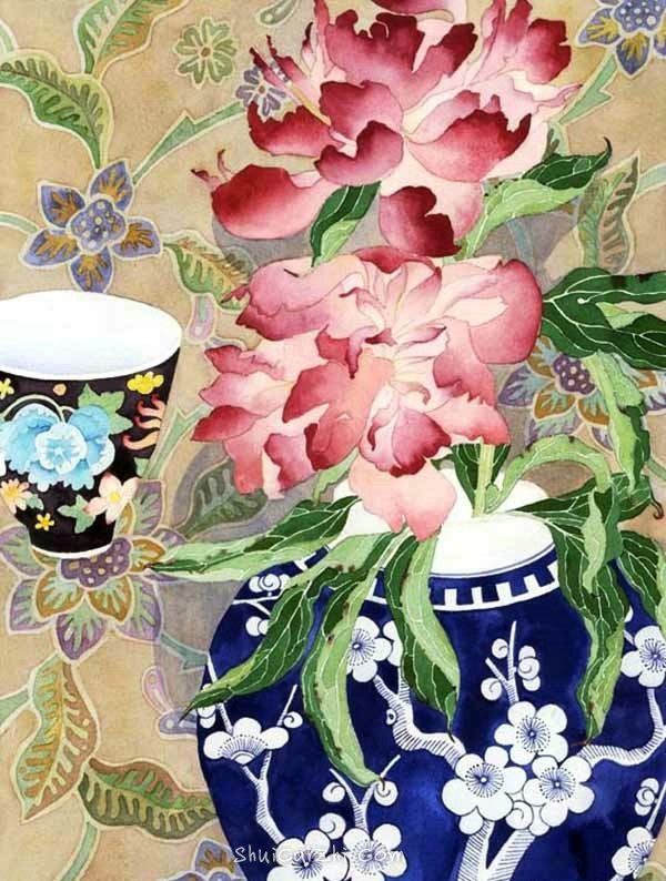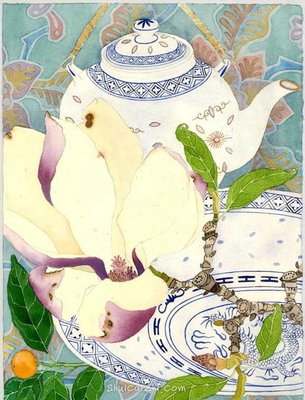 新西兰Mango Frooty青花瓷花卉水彩插画 水彩粉画 水彩画 · 2016-09-26 Mango Frooty,1986年毕业于奥塔哥的训练学校陶瓷专业,毕业之后对油画和水彩画产生浓厚兴趣,用心研究色彩与激情的关系,其画作在英国、新西兰和夏威夷都有展出。 Frooty的花卉画,柔和而细腻,加上中国的青花瓷饱含一种浓浓的中国风暖意。 国外水彩 新西兰画家 水彩画 花卉 静物