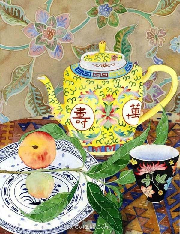 新西兰Mango Frooty青花瓷花卉水彩插画-1