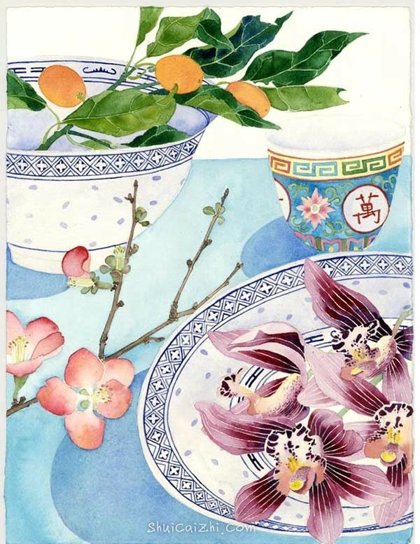 新西兰Mango Frooty青花瓷花卉水彩插画-11