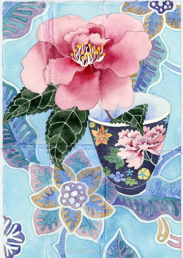 新西兰Mango Frooty青花瓷花卉水彩插画-36