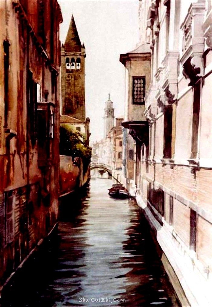 波兰PaulDmoch水上威尼斯建筑风景水彩画-11
