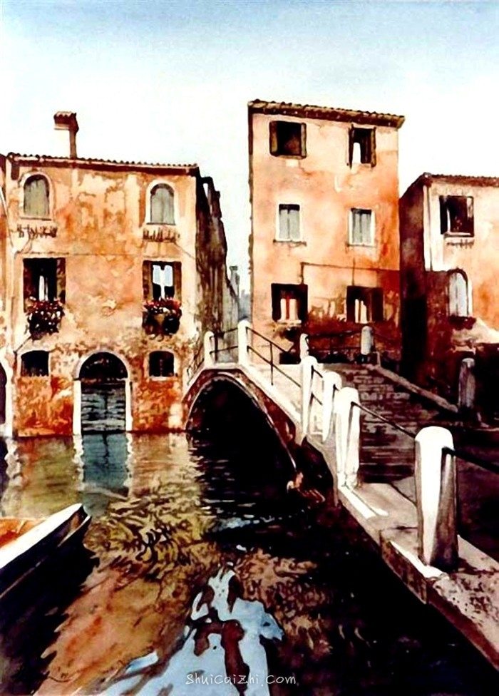 波兰PaulDmoch水上威尼斯建筑风景水彩画-16