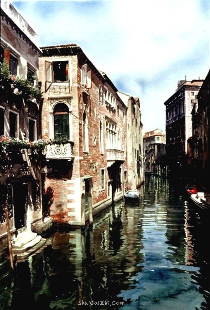 波兰PaulDmoch水上威尼斯建筑风景水彩画-9
