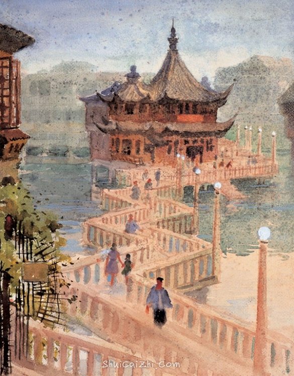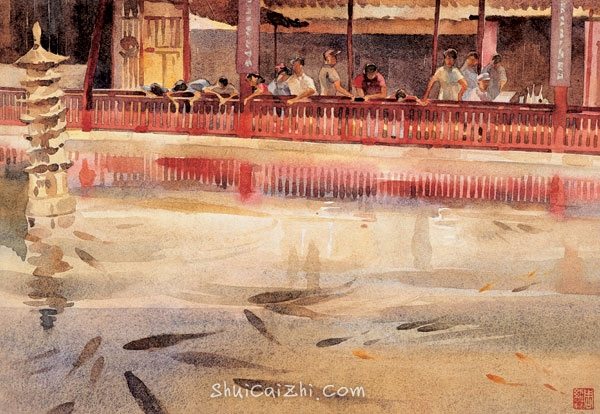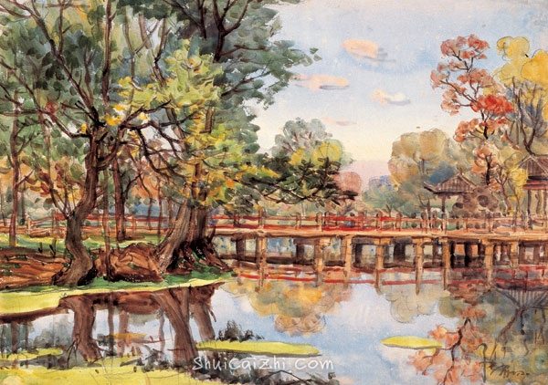 周绍淼 玉泉观鱼 50年代 26x38cm