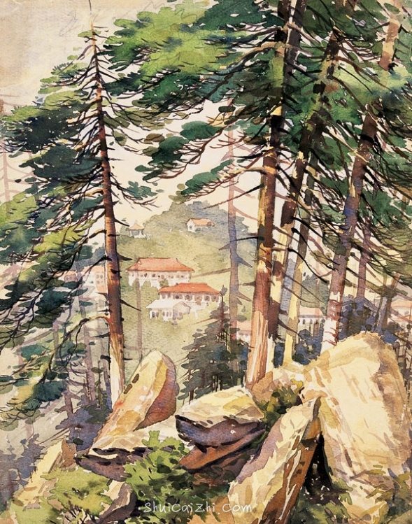 晏文正 崂山明霞洞途中 1964 32x44cm