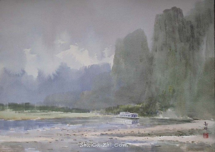 桂林漓江情系列李嘉林水彩画作品-31