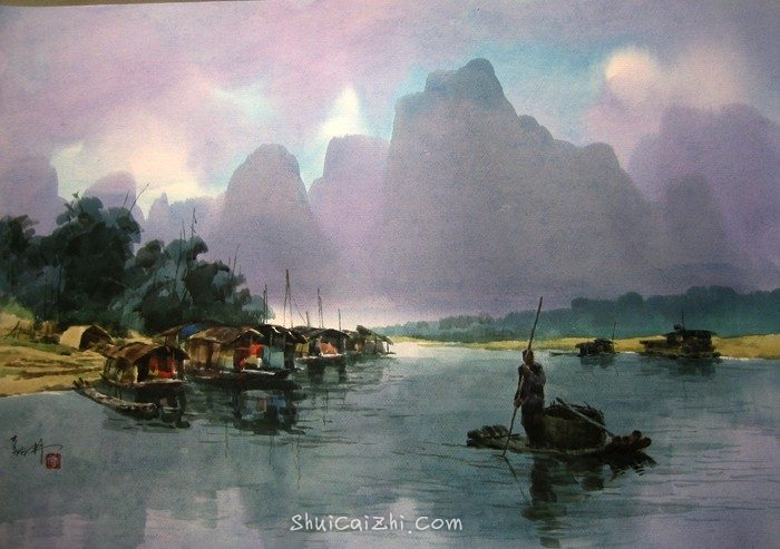 首页 桂林漓江情系列李嘉林水彩画作品-4