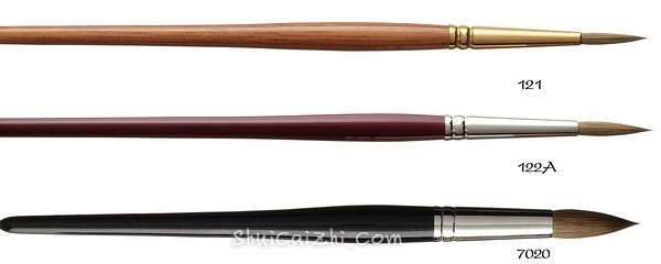 【纯红貂毛】121、122A、7010-7020:德式尺寸,纯红貂毛三件套,其中7010-7020非常特别,是特选的超大号平价貂毛笔。