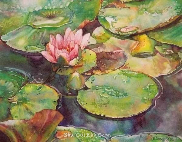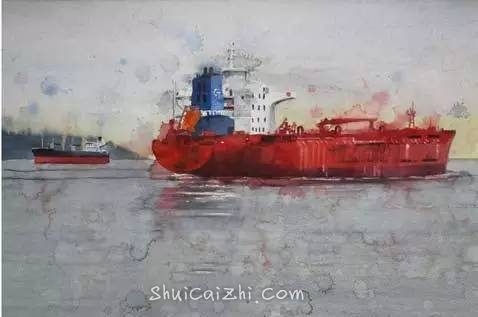 干涂的技法被运用到水面上反光的地方,产生波光粼粼的效果。