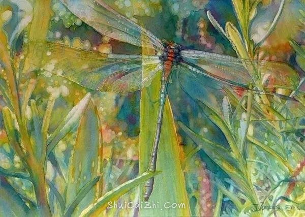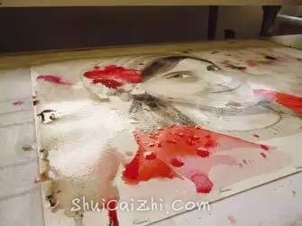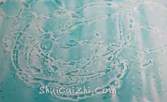 湿水彩上滴酒精,会产生很明显的肌理。如果湿水彩太湿,颜料可能会重新混到一起。