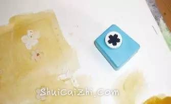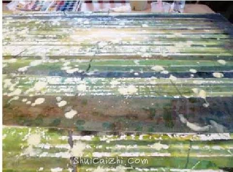 剪下的蜡纸图案可以放在湿的水彩涂层上并且一直留在那里直到水彩变干。这些图案会在水彩涂层上留下微弱的印记。
