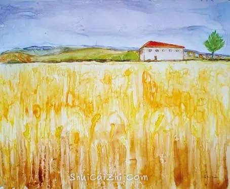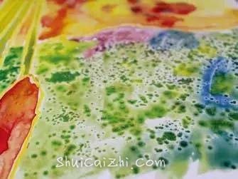 2. 盐 的 妙 用盐在运用到湿颜料上的时候,会将水和颜料吸收到盐晶体上,这样在盐晶体的周围就会形成颜色比较浅的区域,从而产生肌理。用这种技法增加画的趣味性简单又好玩。