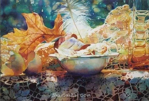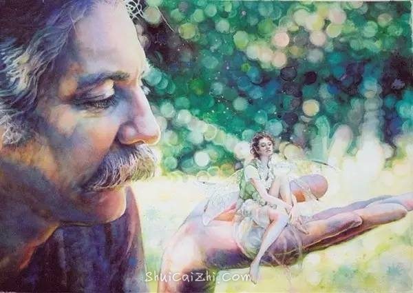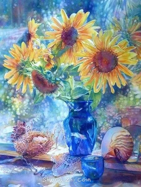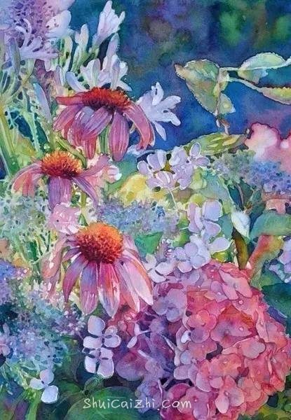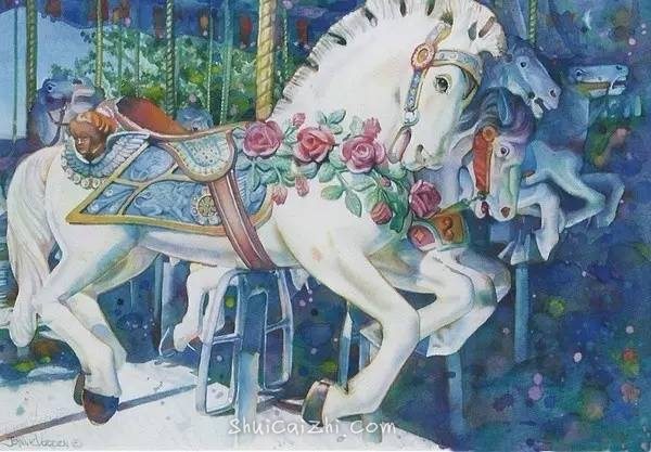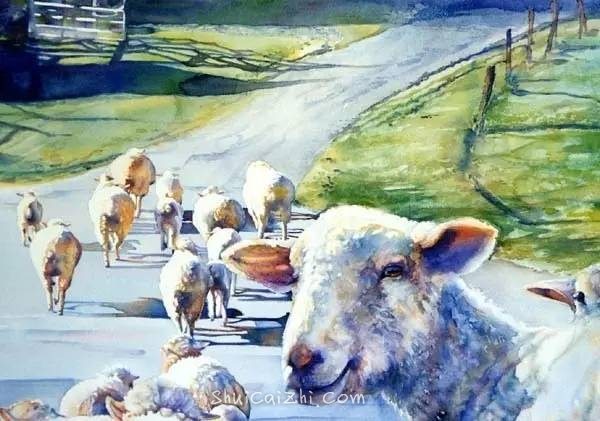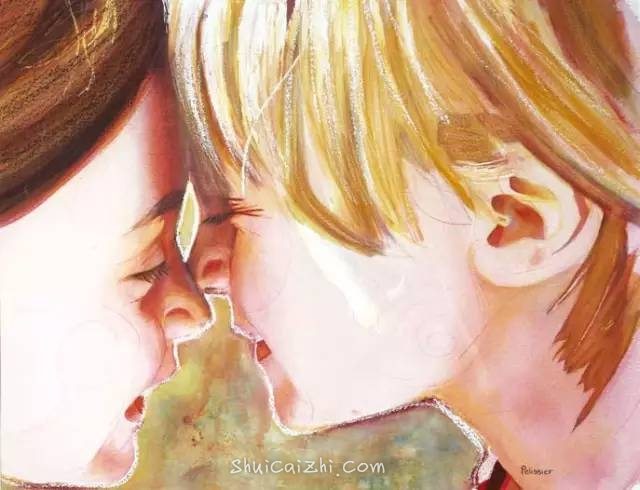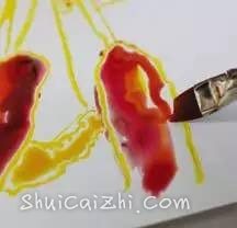 用以往常用的方式为画的各部分涂色。我选择用湿罩湿的方式使几种颜色混合。