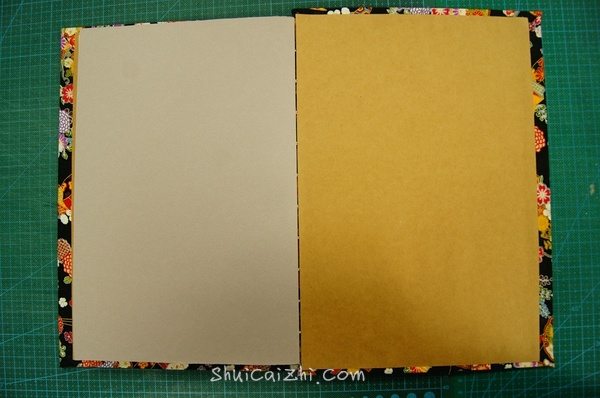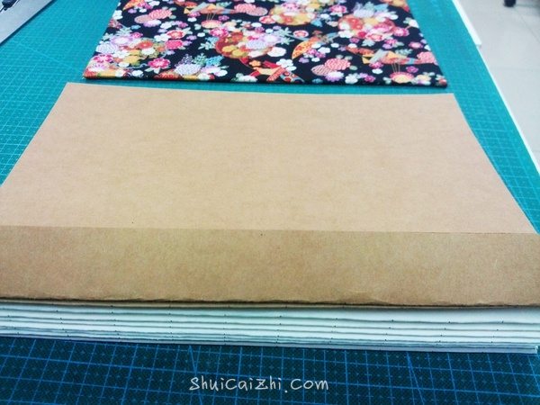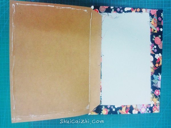 最后,在面向封壳那面的牛皮纸边缘涂上白乳胶,粘在封壳上。封面一样。