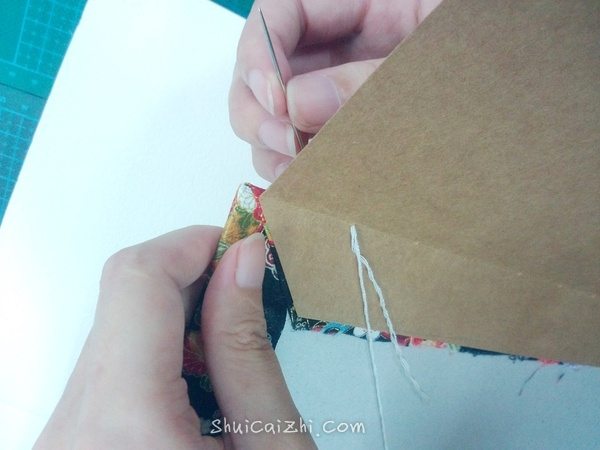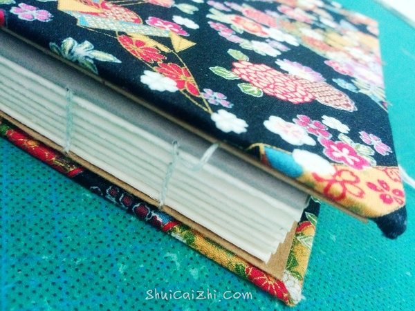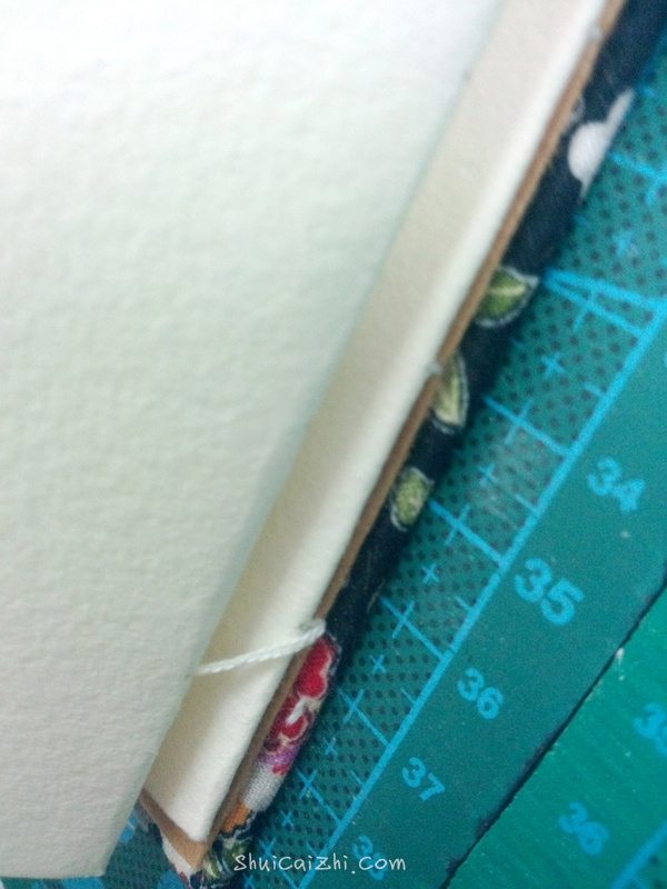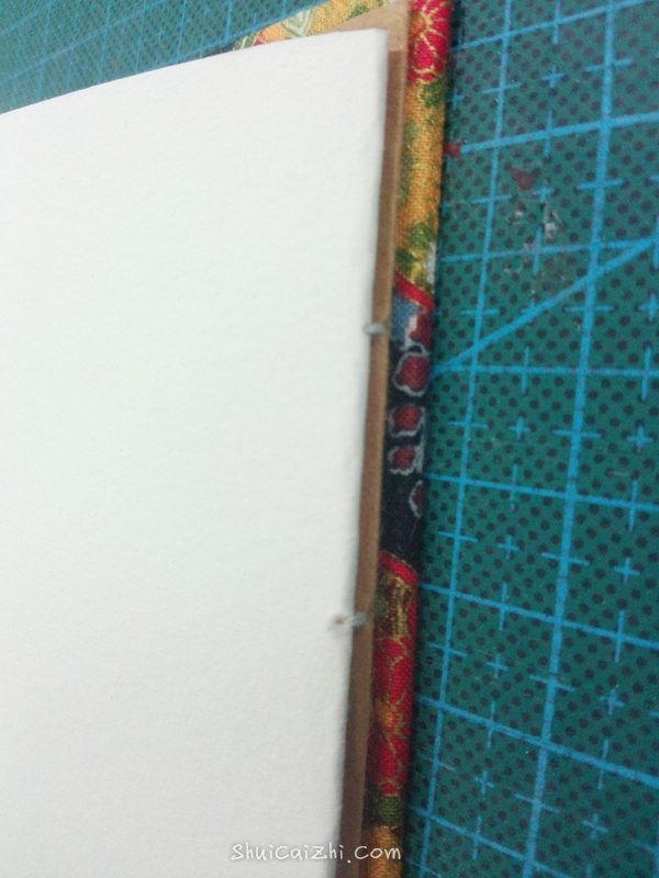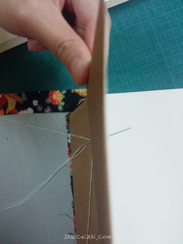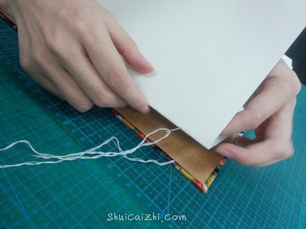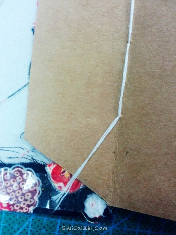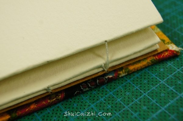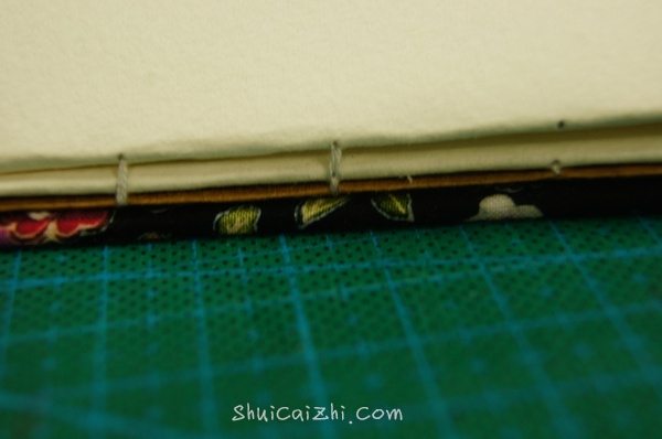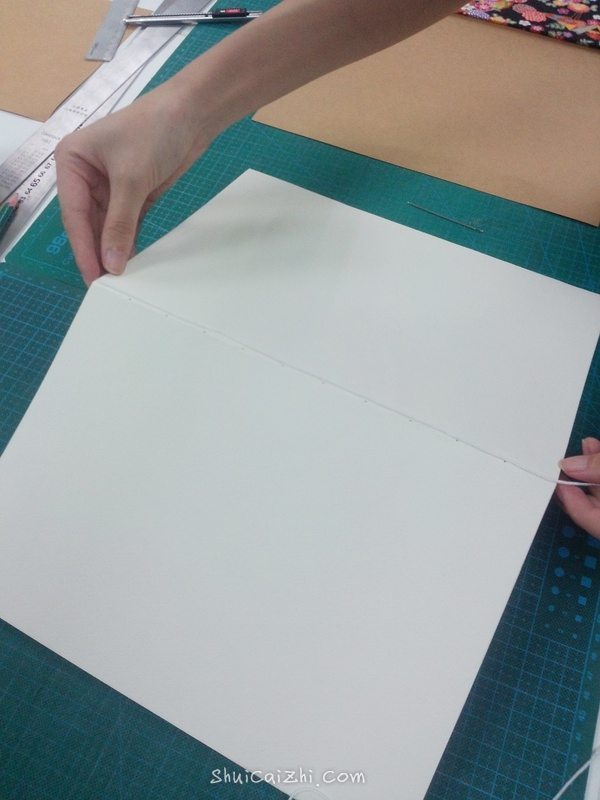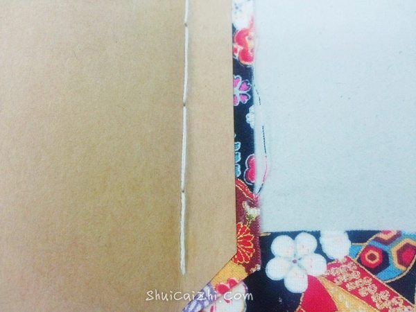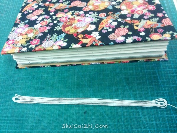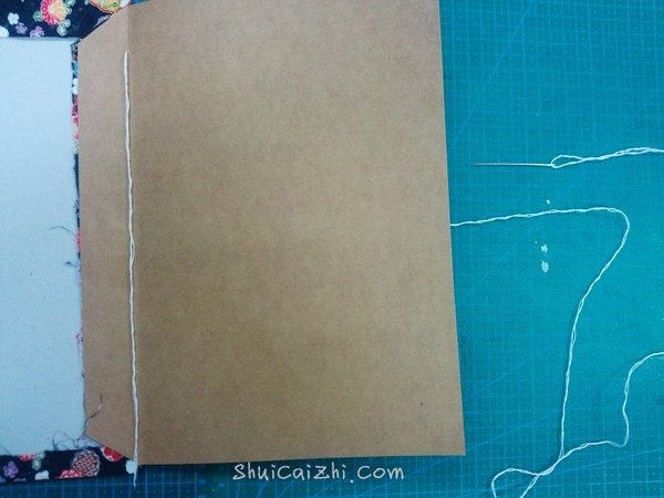从封壳和牛皮纸之间穿过,余下的线要和本子差不多。