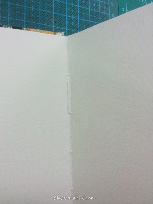 一直重复重复,直到最后的封底!还是和之前一样的穿线方式。全部完成之后把整个本子的线调整一次,收紧。然后最末尾用乳白胶固定住。