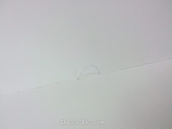 4、把牛皮纸和之前叠好的水彩纸叠整齐,画几根线,就是等会缝线穿针的地方,间隔3cm左右,个人随意。然后用针在画线的地方绰好孔(用大一点的针)。