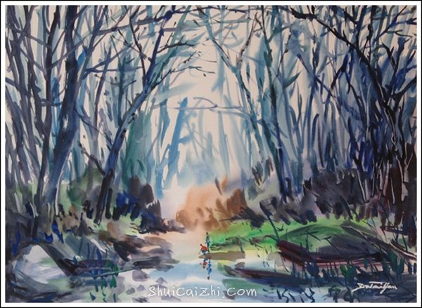 最近在画会的活动中又见到严先生,尽管已经八十二岁高龄,可还是精神矍铄、身姿挺拔、气度不凡。目前,严先生仍然主持着长宁区政协书画协会的工作,并且积极参与各种社会活动,他仍以“年方二八” 积极生活状态在努力探索绘画艺术的真谛。 会后我忍不住向先生要了他近年创作的几幅水彩作品的图片,并征得了先生的同意,发表在这里,请各位朋友欣赏品评。