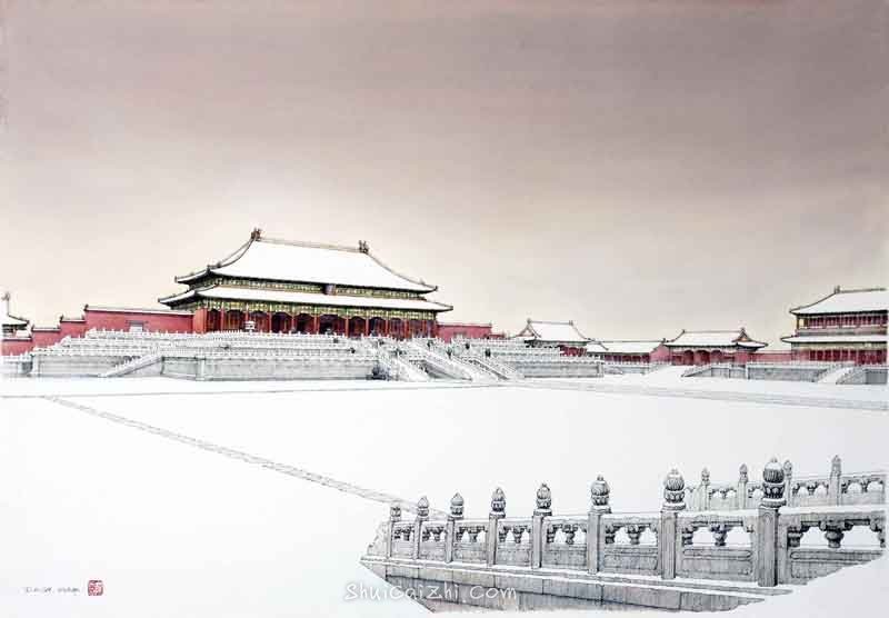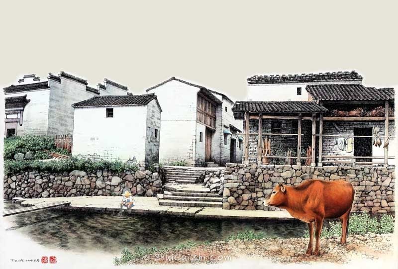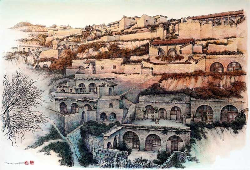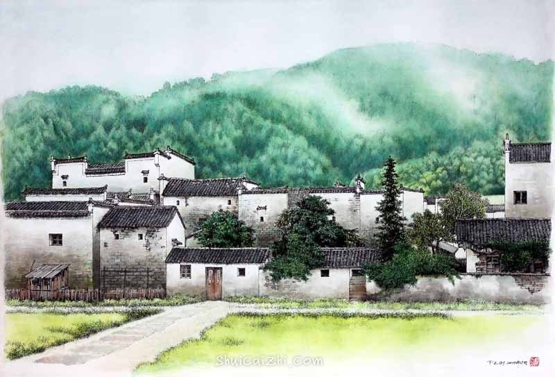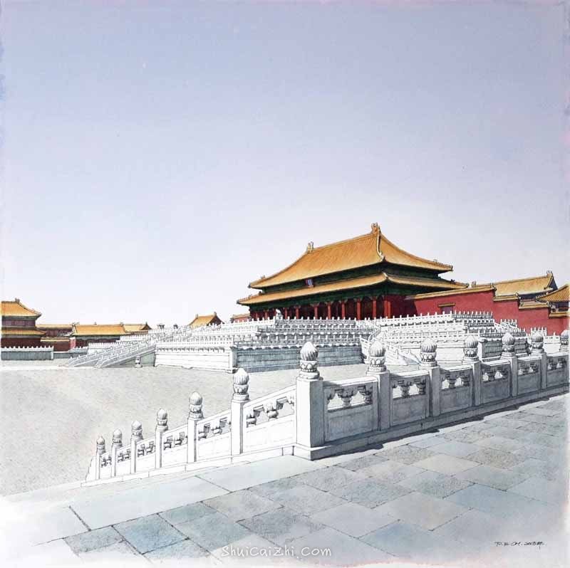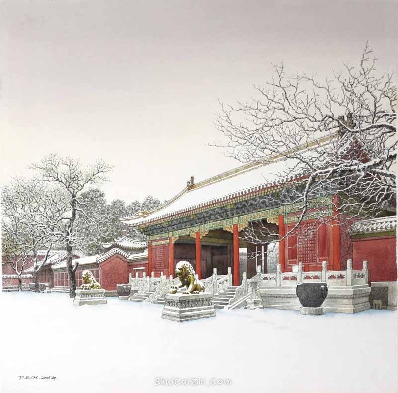 庞恩昌风景古建筑钢笔水彩画作品: