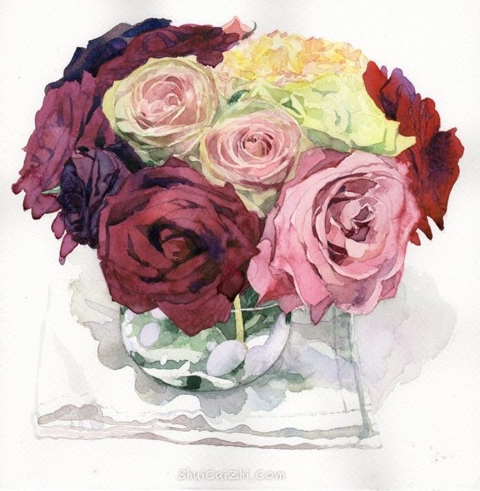 • 泰国Sattha Homsawat水彩笔下的玫瑰花