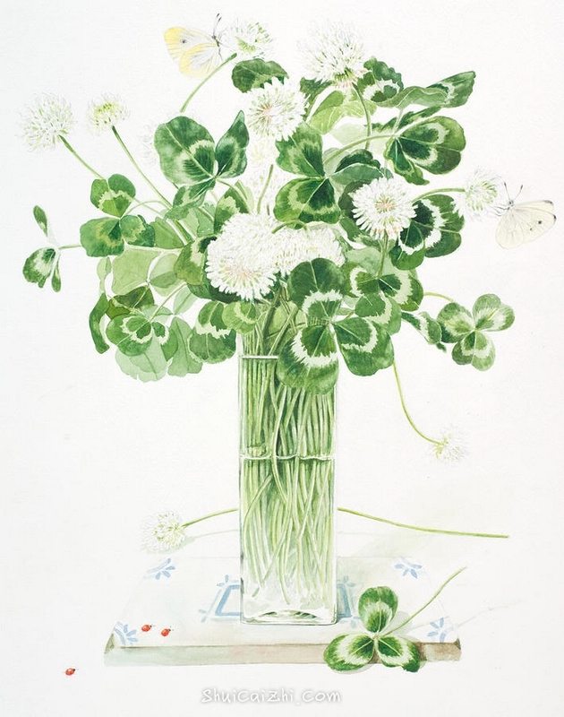 日本柘植彩子Ayako Tsuge的花卉静物水彩画-29