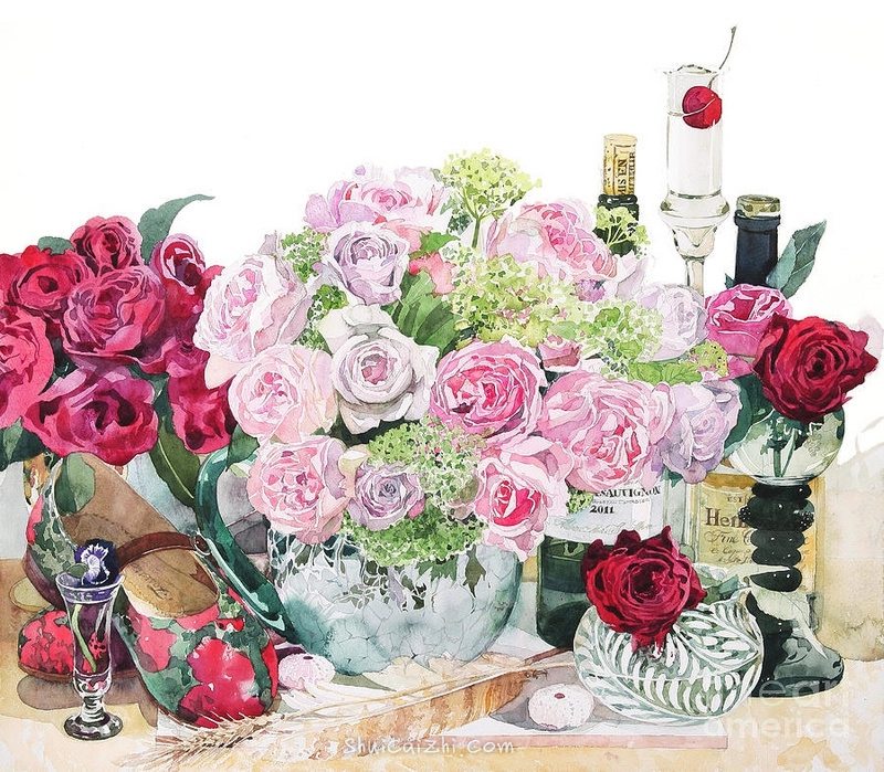 日本柘植彩子Ayako Tsuge的花卉静物水彩画-45