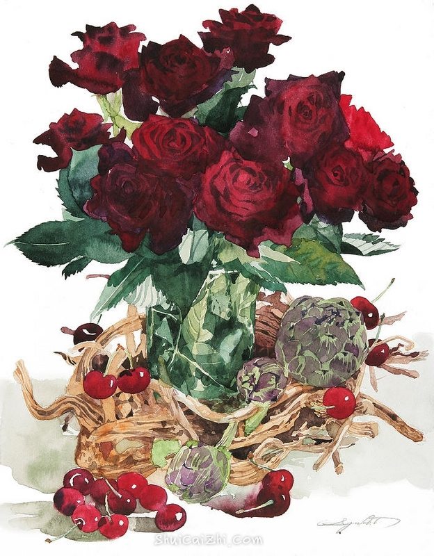 日本柘植彩子Ayako Tsuge的花卉静物水彩画-50