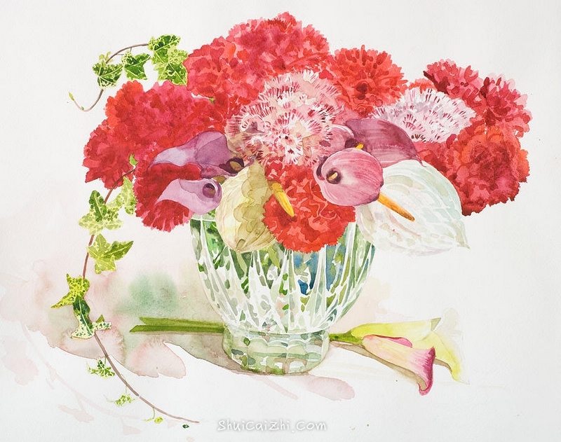 日本柘植彩子Ayako Tsuge的花卉静物水彩画-6