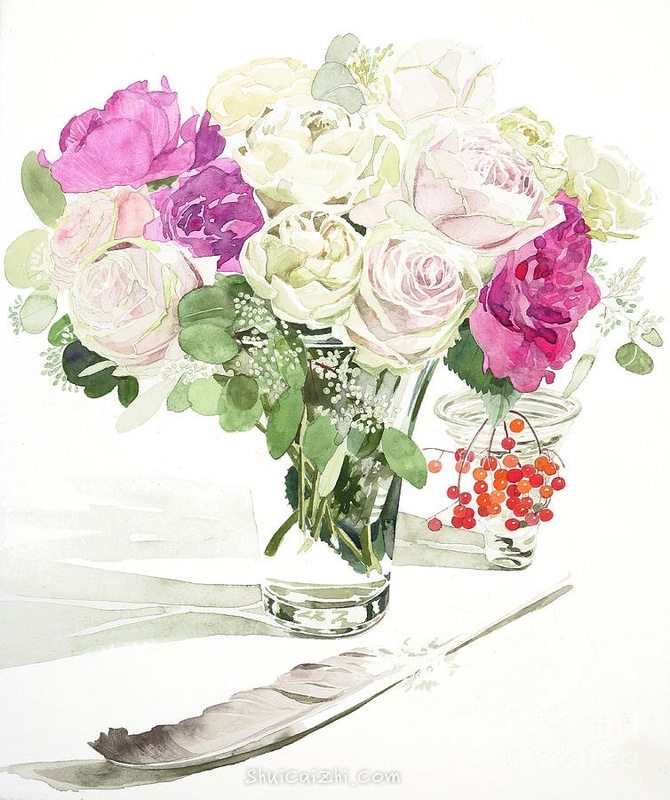 日本柘植彩子Ayako Tsuge的花卉静物水彩画-8