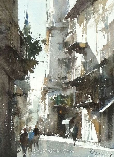 1.水彩画中尽量不要用稀释的黑色单独画一个没有彩度没有冷暖的灰色块,这通常会很丑。