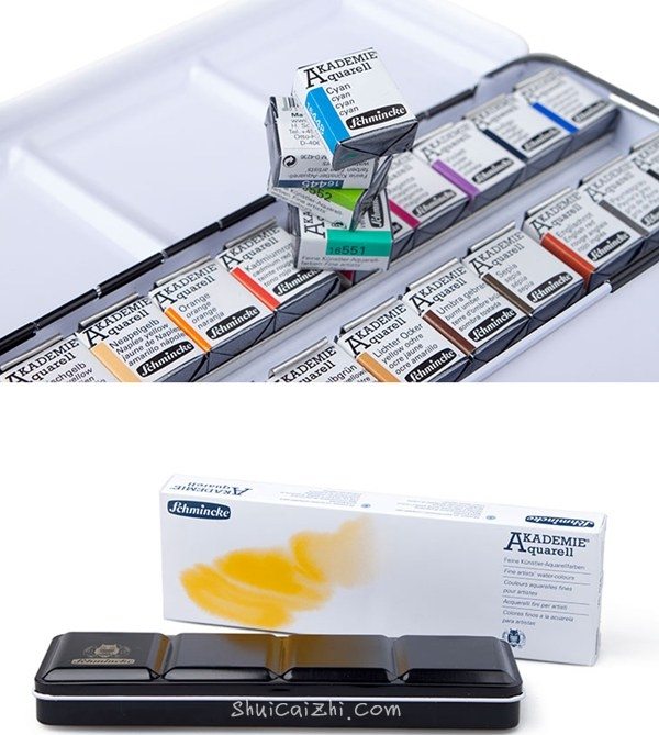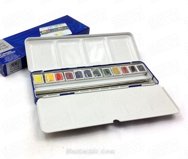 因为这些颜料的尺寸大多比较标准,各个厂家的块状颜料基本都可以互相替换,例如你可以在温莎牛顿24色的套装颜料盒中加入荷尔拜因的颜料块,非常方便灵活。