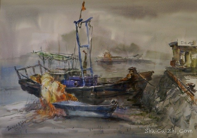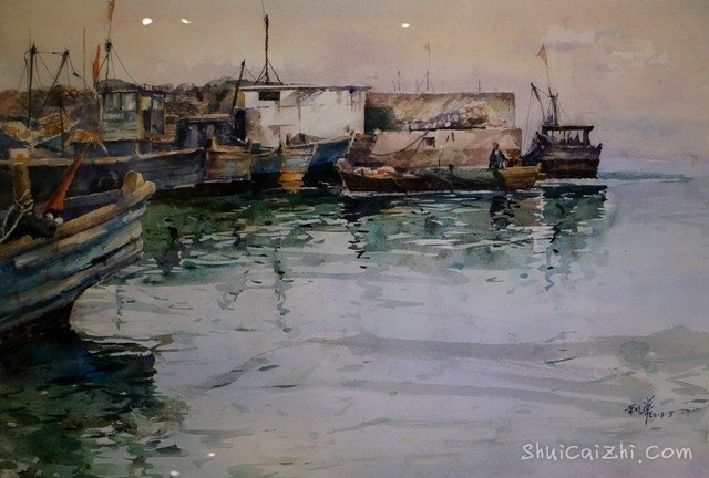 本人到过青岛和韩国,但没有去过仁川市。青岛大约集中了山东省90%的水彩画家,基本代表了山东省水彩画的水平。本次参展的三个滨海城市的50多位画家、近130幅作品中,不乏创意独到、色彩动人、技术娴熟之作。