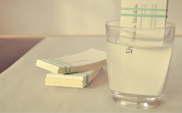 我们以往都很喜欢相互赠送名片给对方,可当对方的名片跟你一样的时候,就很糗了!怎样做出独一无二水彩名片?很简单! 准备材料:一叠名片、颜料、小吸管、筷子、橡皮筋 方法: 第一步,先把一叠名片用橡皮筋绑好…
