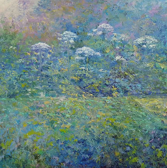 本幅画面以绿色为主色调,虽同为暖色调,但要注意同系颜色的区分。近处的草坪要调和黄色,让画面有温暖的感觉。风景为优先绘制的部分,先画出景色,最后绘制人物。 1. 用颜色大致的构图。注意比例准确,分布合理…
