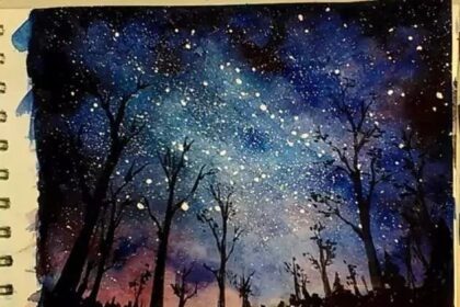 在静谧的夜色中,水彩画中的星空犹如梦幻般展开。深邃的蓝调背景上,繁星点点,如同闪烁的精灵,在画纸上跳跃。水彩的流动与交融,赋予了星空独特的诗意与韵律,引领观者踏入一个充满无限遐想与浪漫的世界。 第1步…