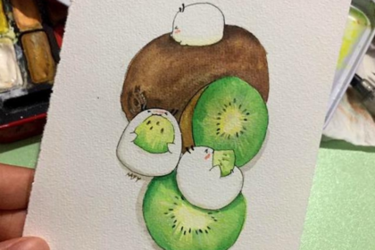 猕猴桃简笔画画法简单有趣。首先,用弧线勾勒出猕猴桃的轮廓,再画出它的小椭圆切面。接着,为猕猴桃添上点点细节,让全身显得毛绒绒。最后,用浅黄和绿色为切面涂色,棕色涂身体,褐色画嘴巴和脸颊。这样,一颗香甜…