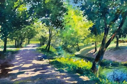 从色彩运用来看,这几幅水彩风景画展现出了令人赞叹的技艺。画家巧妙地运用了各种色调,既有淡雅清新的浅色,也有深沉浓郁的重色,相互映衬,营造出丰富的视觉层次。色彩之间的过渡自然流畅,宛如大自然的呼吸,使得…